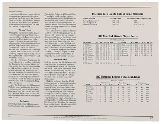 1913 Giants Cooperstown Collections Statistics Commemorative 9x12 Stat Card With Cloth Uniform Patch